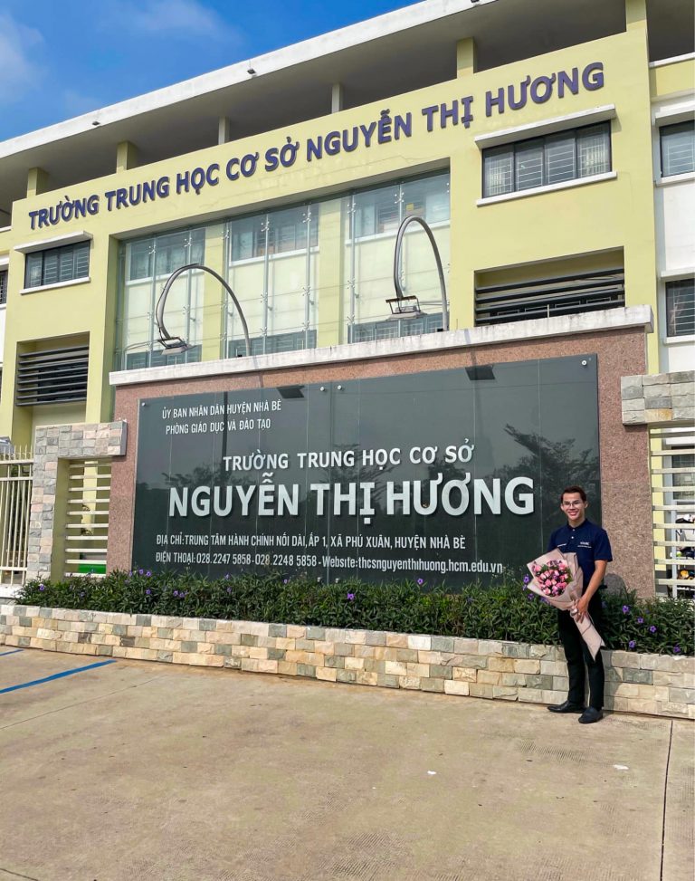 Nhận thư mời từ hiệu trưởng trường THCS Nguyễn Thị Hương, huyện Nhà Bè, sáng thứ hai 05/4/2021, Founder YOURE Lê Hoàng Phong đã có